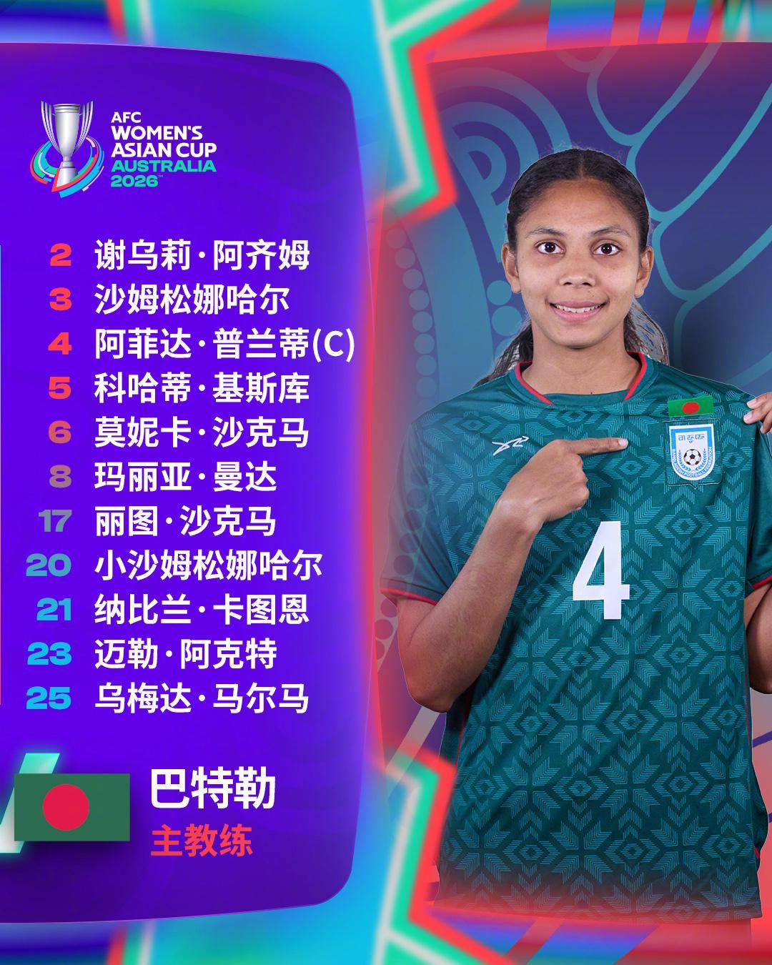 孟加拉国女足是首次参加亚洲杯,这是一支年轻的学生军。